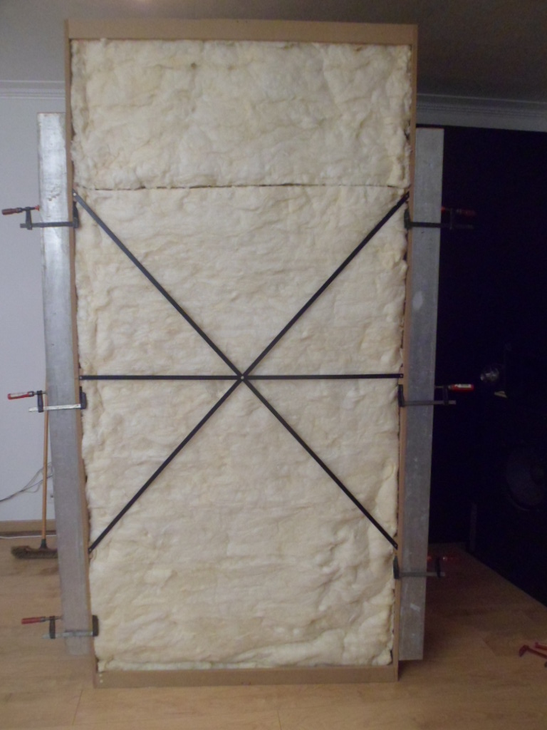 Le document Construction d'un absorbeur acoustique large bande décrit la réalisation d'un panneaux absorbeur constitué de laine de verre et donc la bande de fréquence s'étend de 60 hz à 20 khz. Ces panneaux font 250 cm de haut, 120 cm de large et 40 cm d'épaisseur. Il pése 30 kg. Leur coût de fabrication est de 100 €.