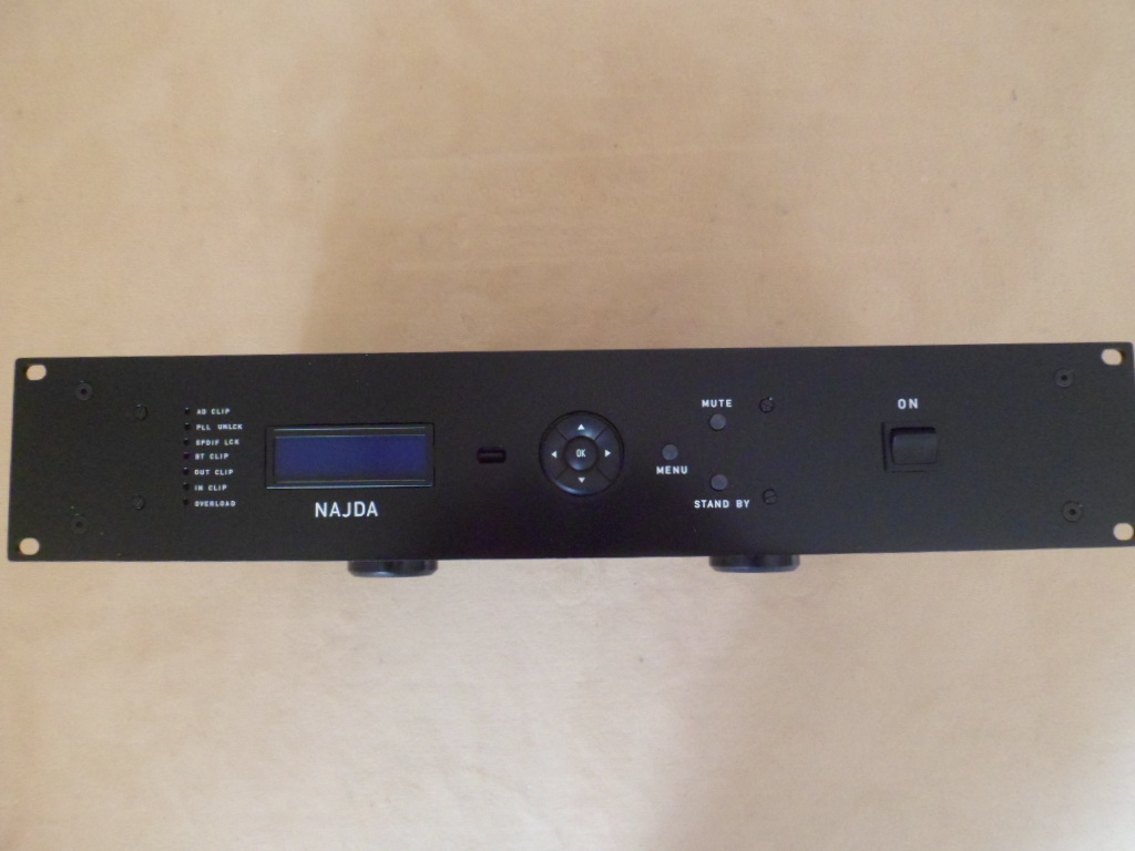 Pour filtrer les haut-parleurs j'utilise le filtre Najda de la société Wroclaw Audio Force. Le filtre Najda constitue un processeur DSP complet de filtrage. Il est vendu sous forme de carte à monter dans un boitier ou pret à l'emploi. Le filtre Najda possède les caractéristiques suivantes :